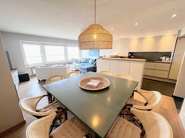 Charmant vakantieappartement met frontaal zeezicht in Duinbergen. Voorzien van drie slaapkamers, twee badkamers en zonnenterras achteraan.