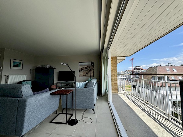 Ruim zuidgericht drie kamer-appartement in Duinbergen