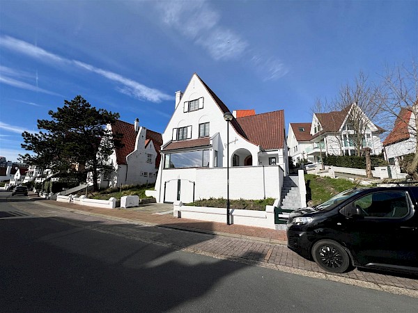 Volledige gerenoveerde villa te Duinbergen. We betreden deze villa op de eerste verdieping via de inkomhal met aansluitend vestiaire en toilet. Daarna komen we in de ruime en lichtrijke leefruimte voorzien van gashaard en met toegang tot het terras, verder is er nog de open keuken. Op de tweede verdieping zijn er 4 slaapkamers met elk hun eigen douchekamer en toilet. Op de derde verdieping is er een 5de slaapkamer met dressing en douchekamer en toilet. Op het gelijkvloers is er een ruime garage en een extra doucheruimte.