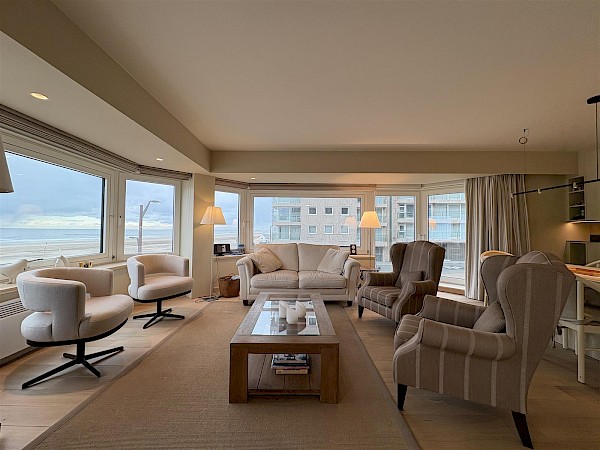 Charmant 2 slaapkamer appartement met frontaal zeezicht aan het Manitobaplein in Duinbergen.
