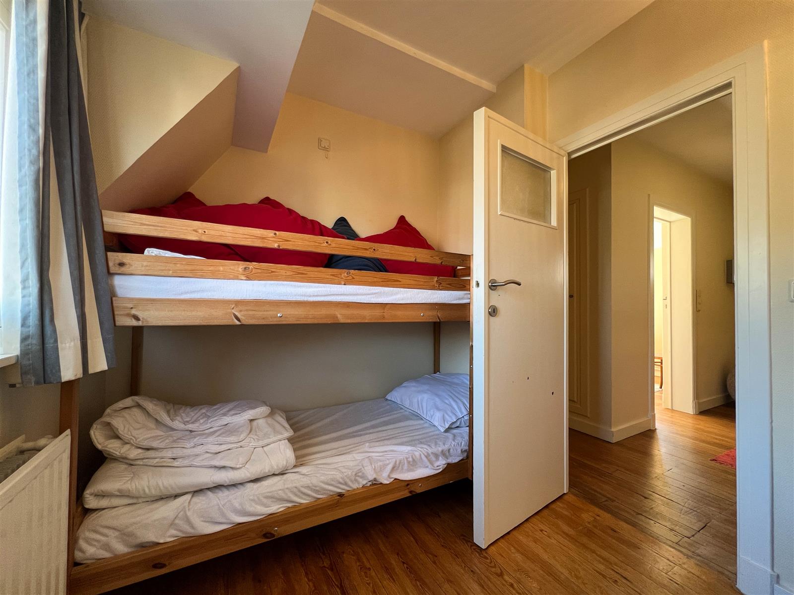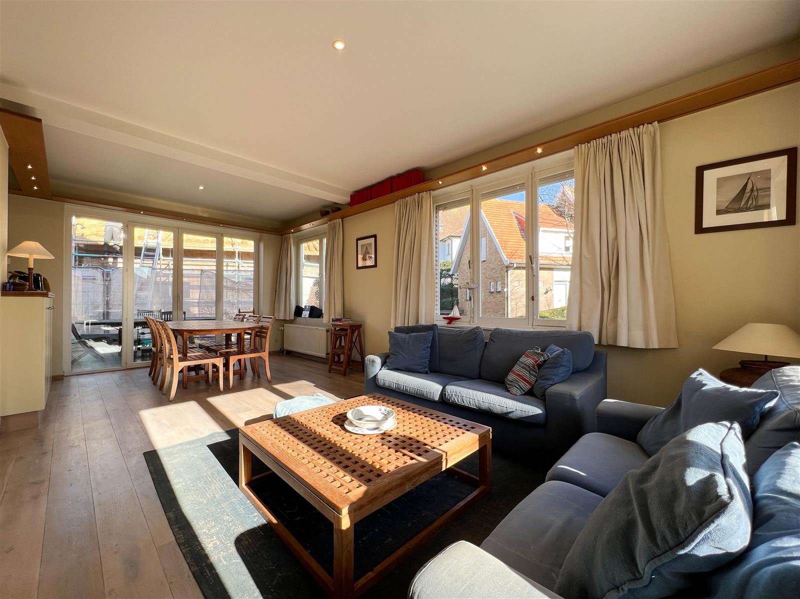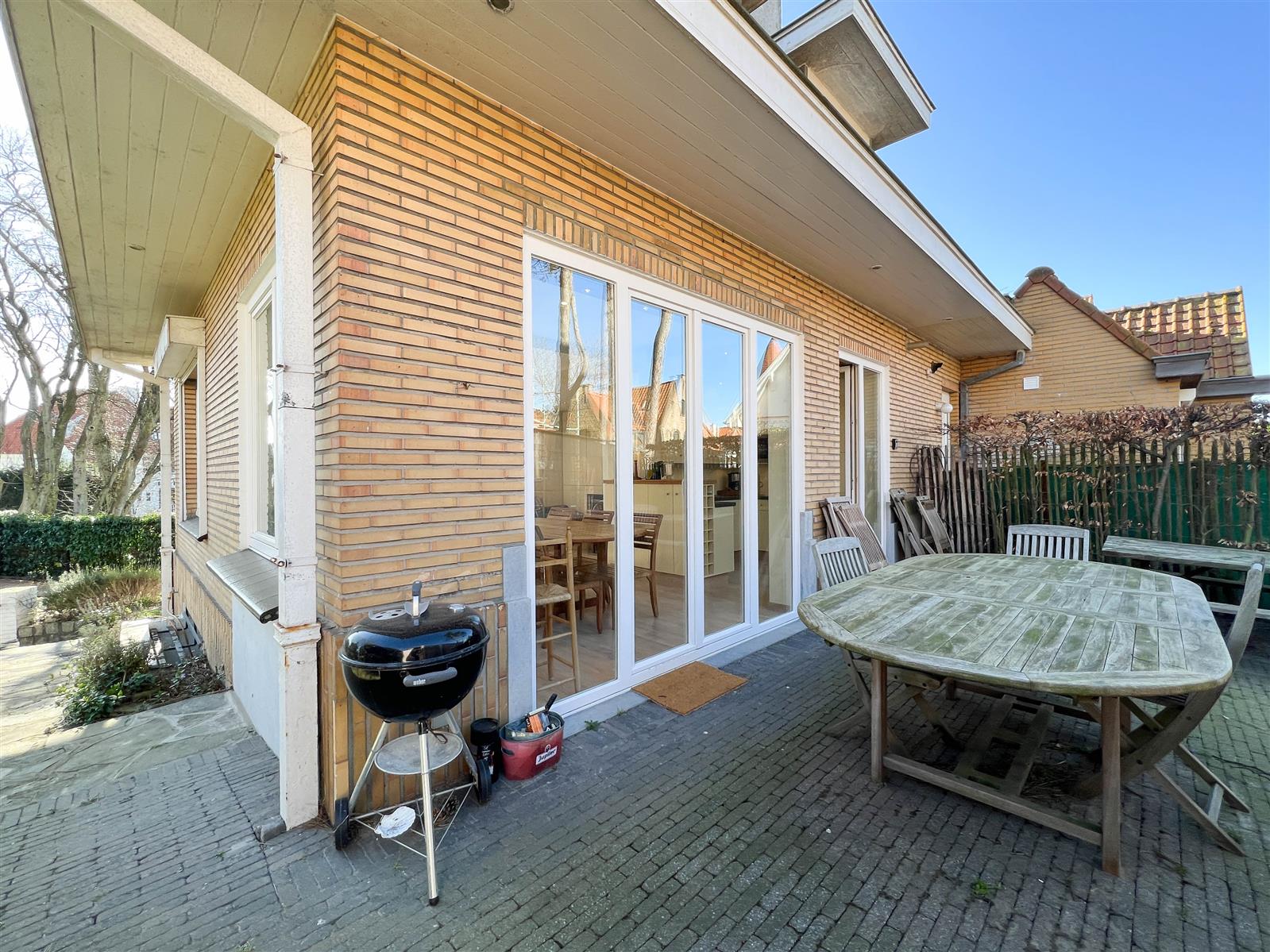 Aangename koppelvilla in een gezellig paadje te Duinbergen. Deze woning beschikt over een inkomhal met gastentoilet, een ruime leefruimte met open keuken en aansluitend toegang tot het terras. Op de eerste verdieping bevinden zich 3 slaapkamers en een badkamer, er is een 4de slaapkamer op de tweede verdieping. Er is tevens parkeerplek voor één wagen en een garage voor het plaatsen van fietsen.