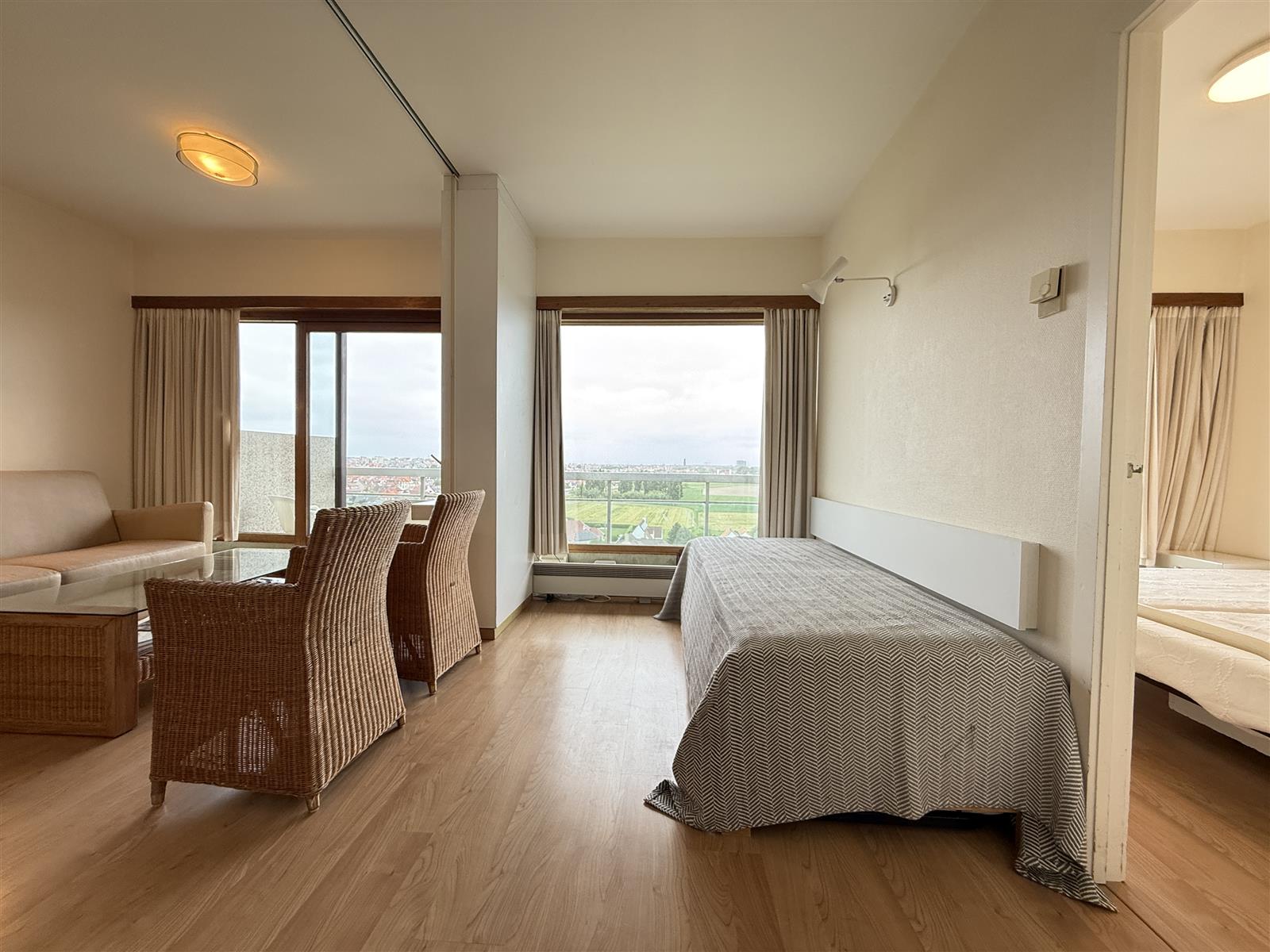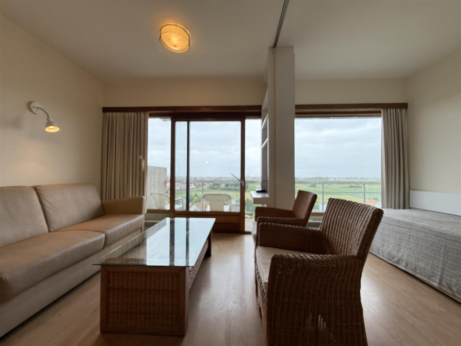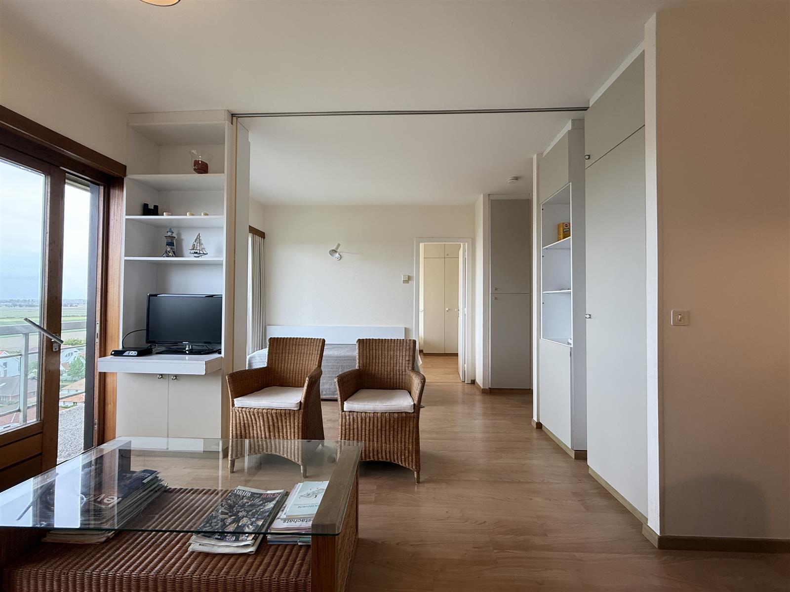 Aangenaam éénslaapkamer appartement in residentie Laguna Beach. Het apparteemnt geniet dan ook van een groot zonnig terras met zicht over knokke. Daarnaast is de residentie voorzien van een overdekt zwembad en privéstrand.