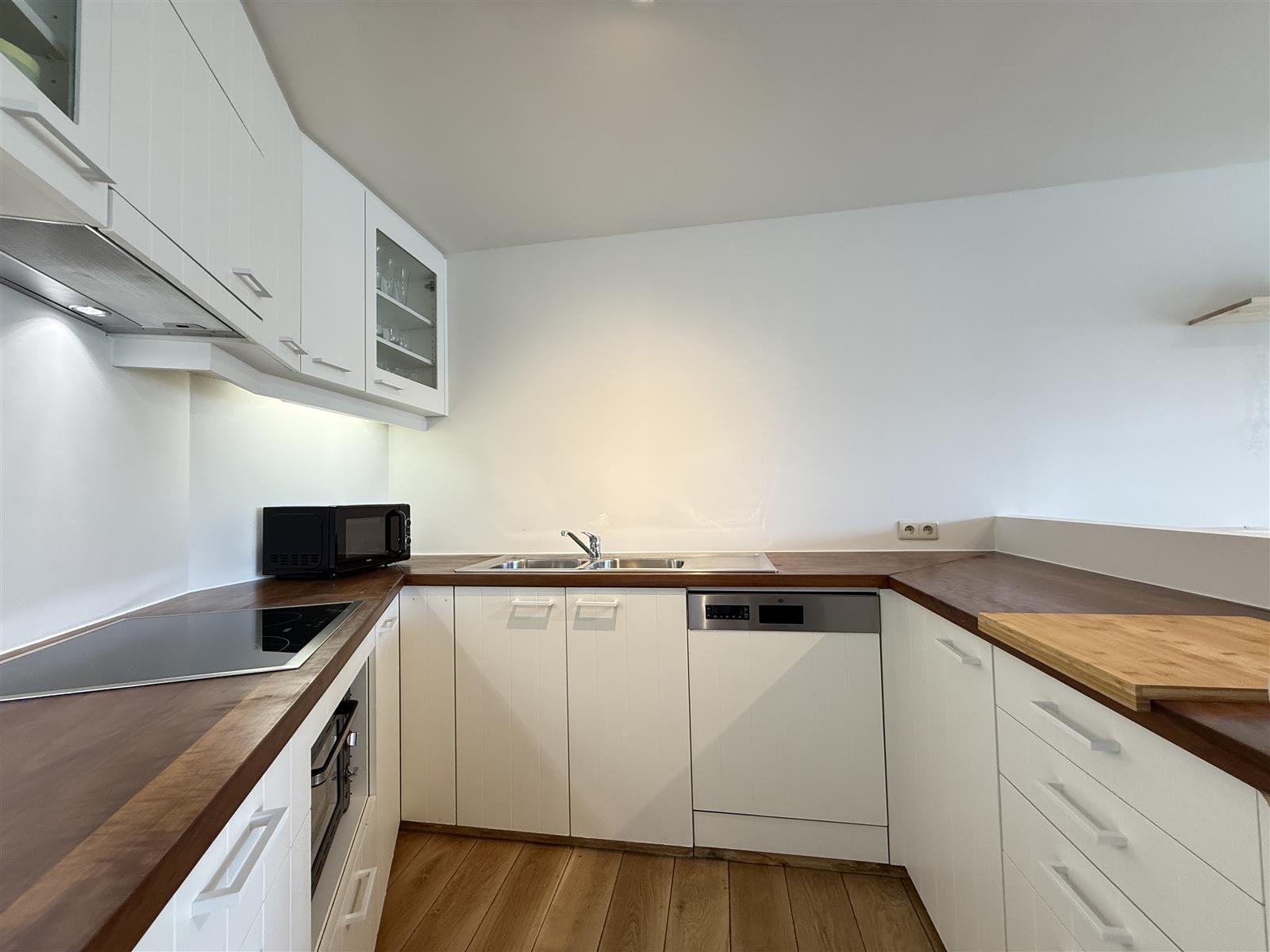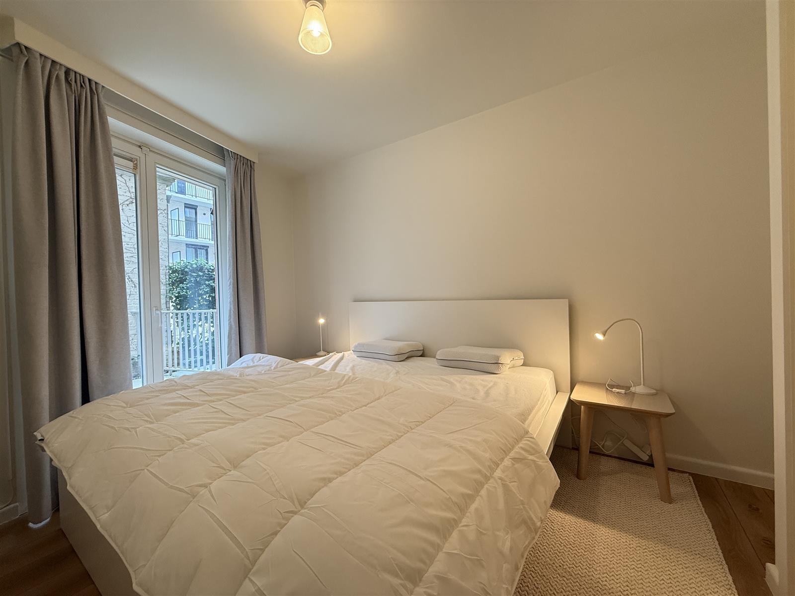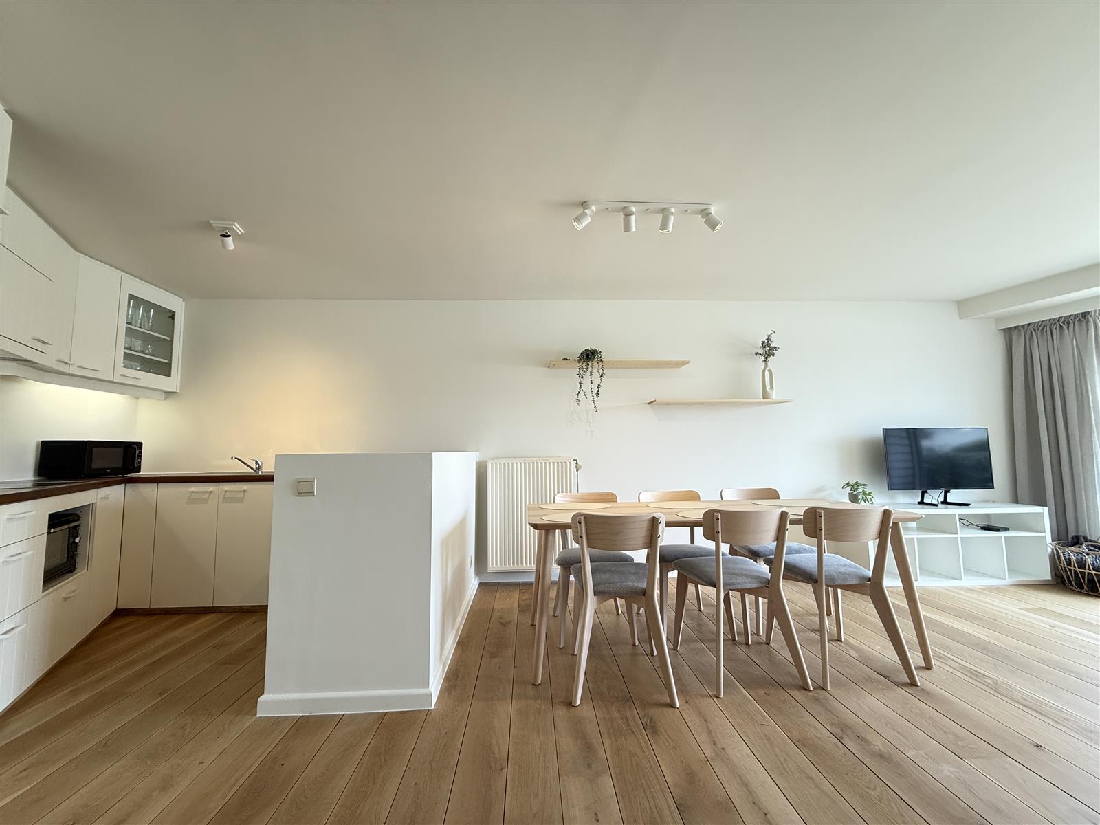 Gezellig gelijkvloersappartement met zuidgericht zonneterras de hoek om van de zeedijk te Duinbergen. Mogelijk om staanplaats in het gebouw bij te huren.