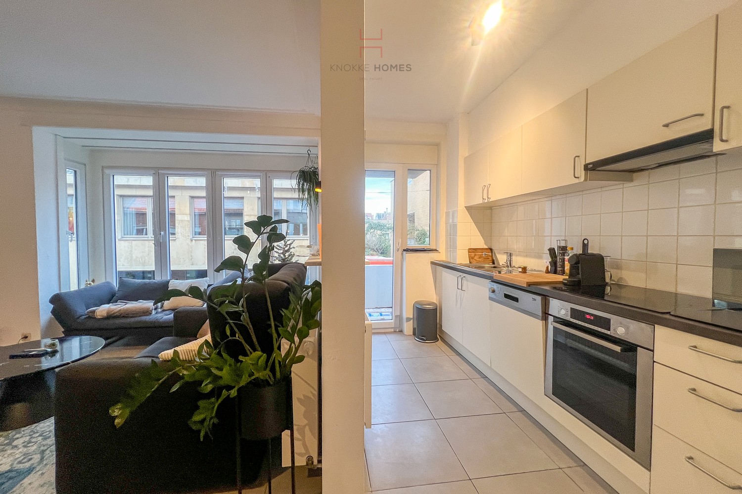 Via de inkomhal heeft u toegang tot alle ruimtes van het appartement. De ruime living geniet van veel natuurlijk licht en biedt een aangename en gezellige leefruimte. De volledig ingerichte keuken is voorzien van moderne toestellen en geeft toegang tot een balkon. Het appartement beschikt over twee ruime slaapkamers (voor dubbel bed), waarvan één uitkomt op een oostgericht terras. De badkamer is uitgerust met een douche, lavabo en aansluiting voor WM/DK. Verder is er nog een apart toilet.