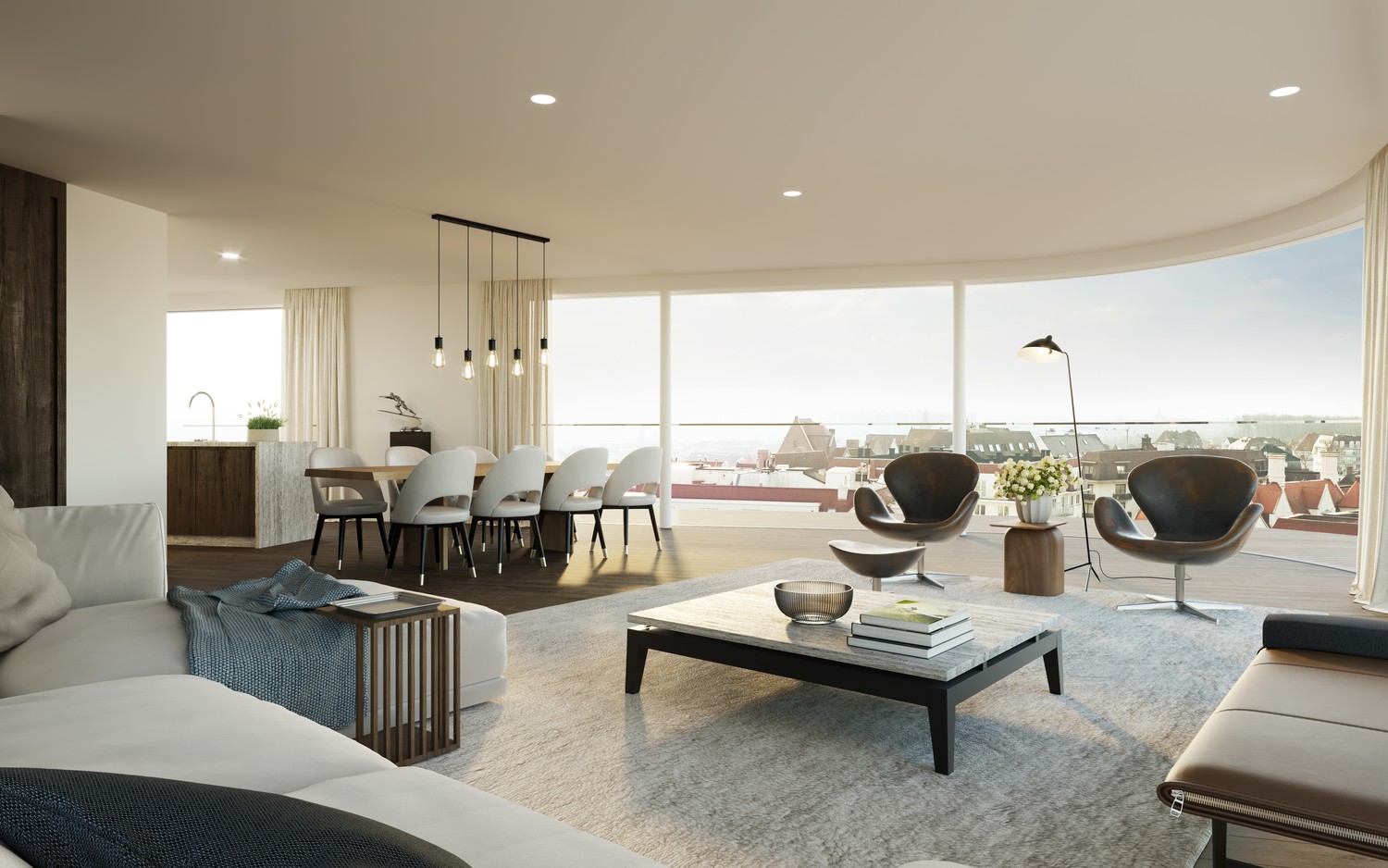 Knokke Zeedijk Duinbergen - Duinrésidence. Royaal duplex appartement van ca. 273 m2 bewoonbare oppervlakte met ca. 26 groot terras met frontaal zeezicht op de 8ste verdieping .