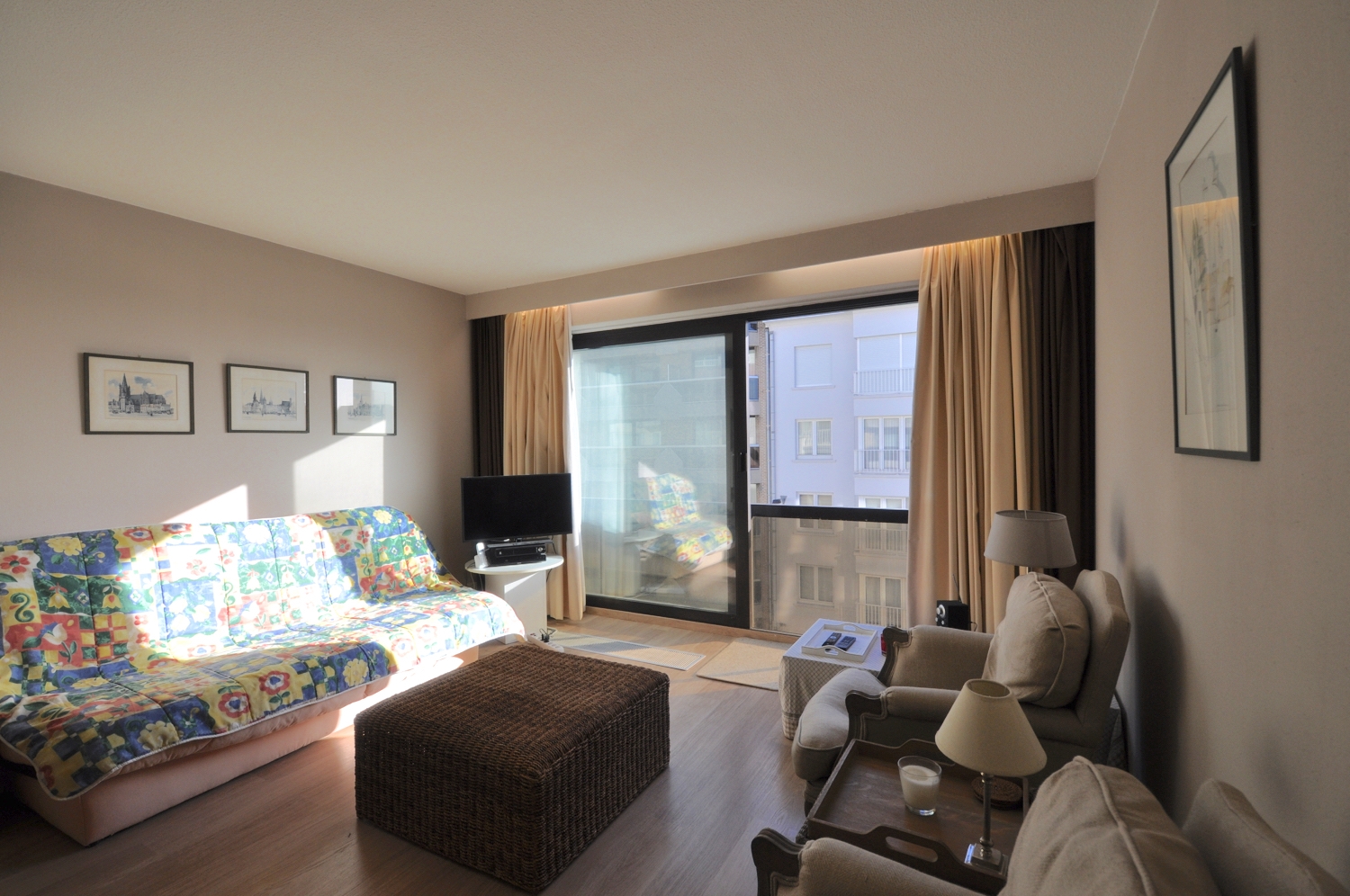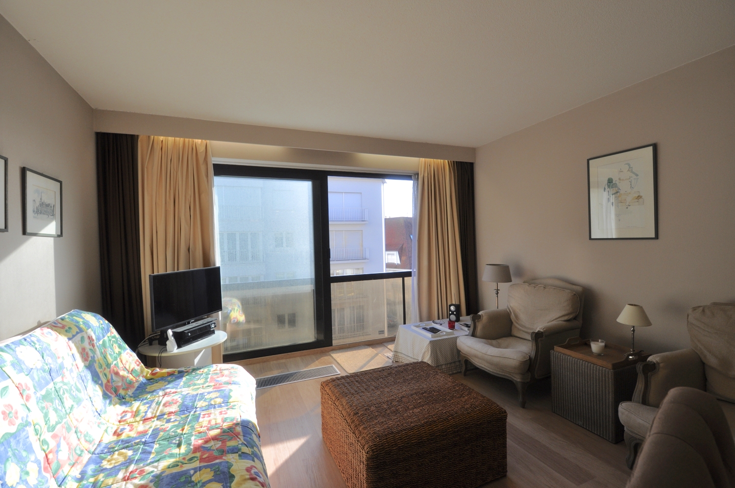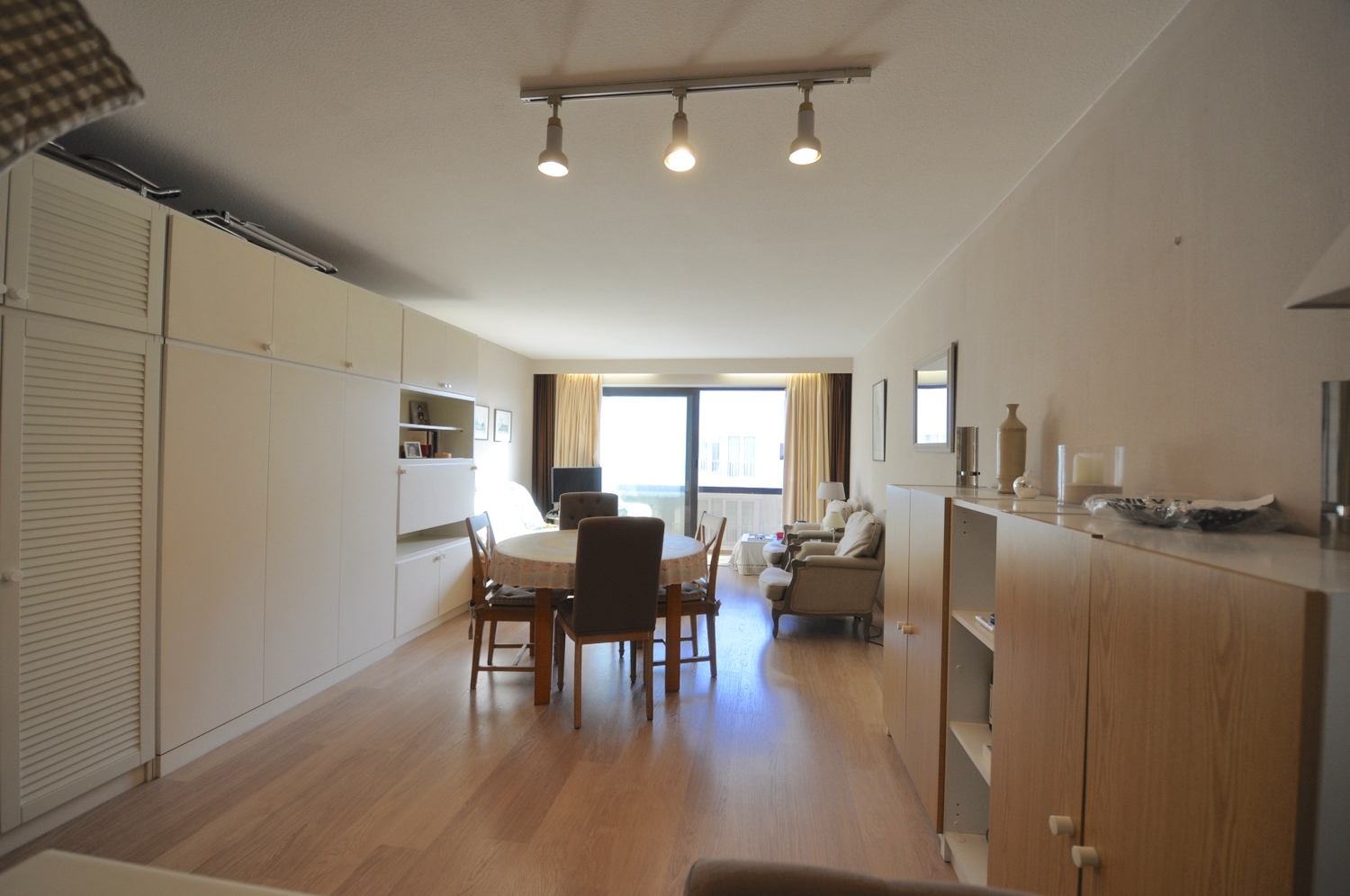Leuke en lichtrijke op te frissen studio vlakbij de zee en het Rubensplein in Knokke. De studio omvat een gezellige woonkamer met eethoek en een groot raam met zijdelings zeezicht. Verder een ingerichte keuken, een doucheruimte en een apart toilet. De voorgevel en de ramen werden recent vernieuwd. Deze studio is verhuurd maar vrijblijvend te bezichtigen na afspraak op nr. 050/760.760.