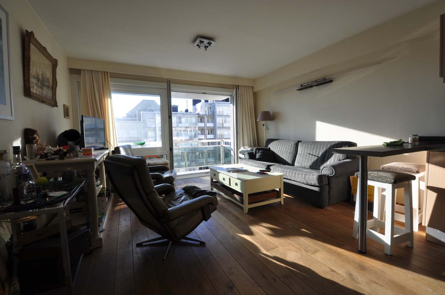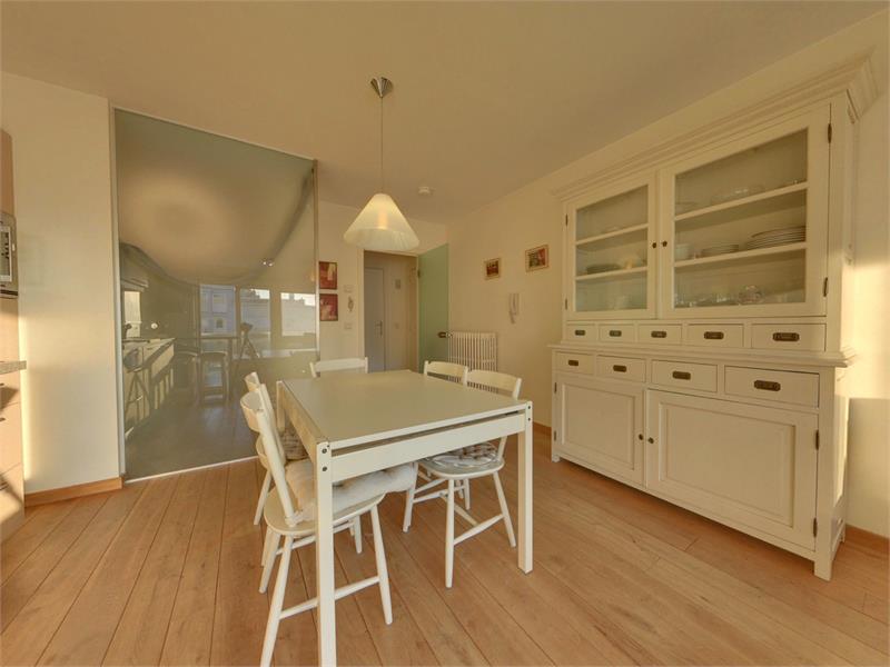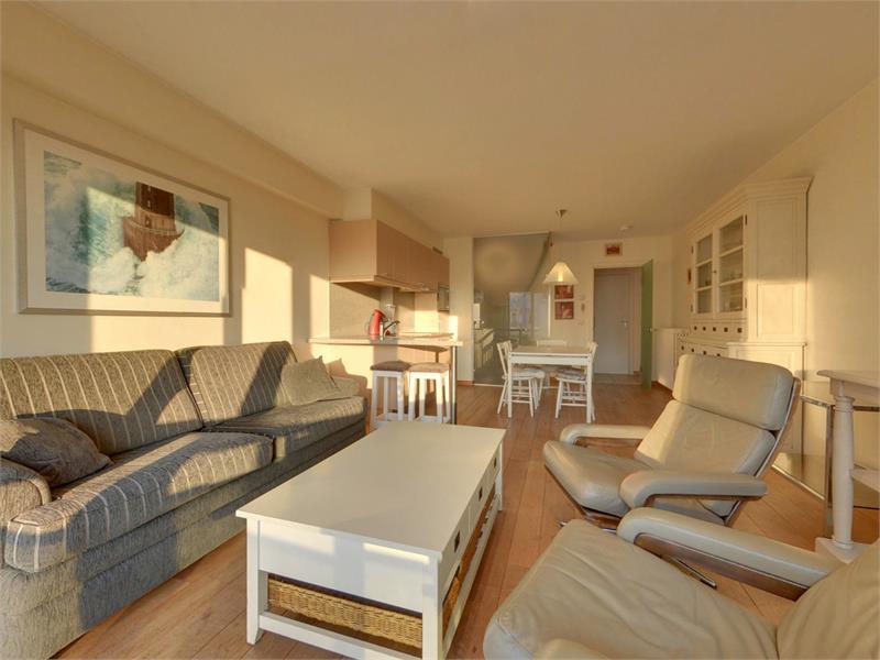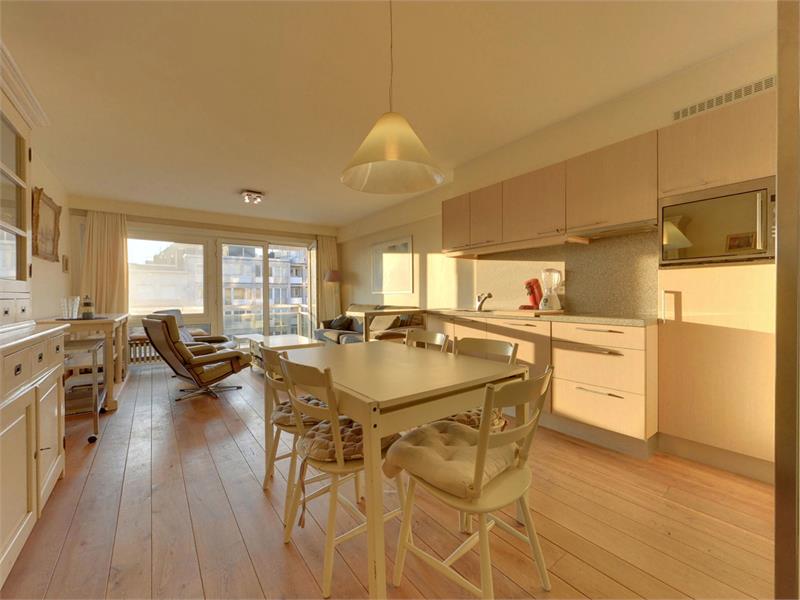 Comfortabele woonkamer met west gericht zonneterras en een prachtig zicht op zee. Inkomhal met vestiaire, open keuken met eethoek, slaapgedeelte voor 3 personen en doucheruimte met wastafel, inloopdouche en toilet. Kelder en fietsenberging in het gebouw zijn inbegrepen. Informatie en vrijblijvend bezoek na afspraak op het nr 050/760 760.