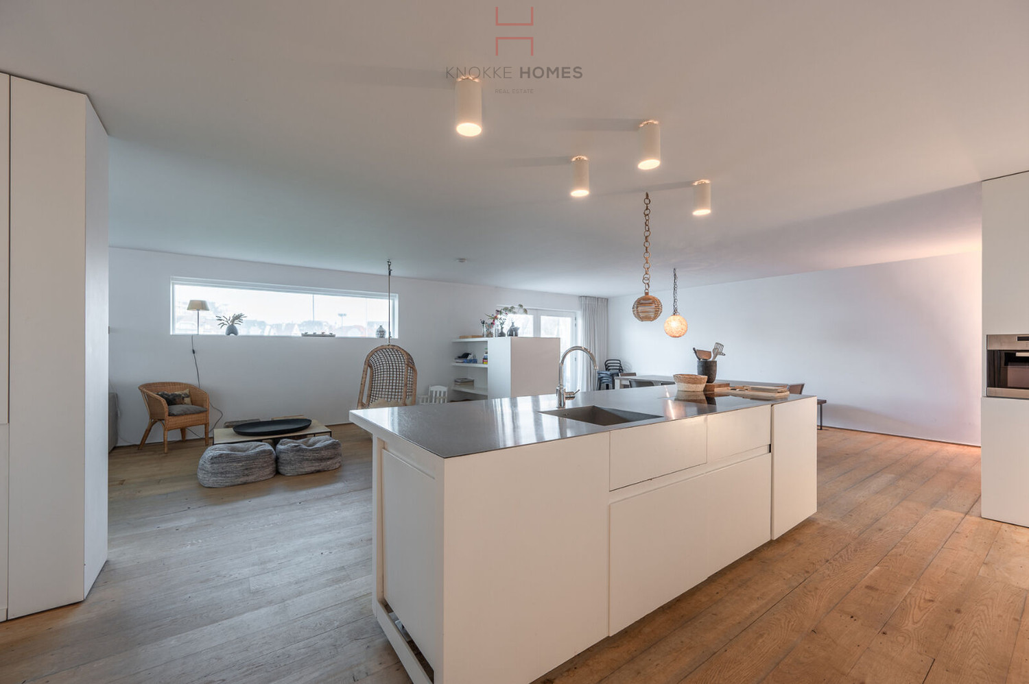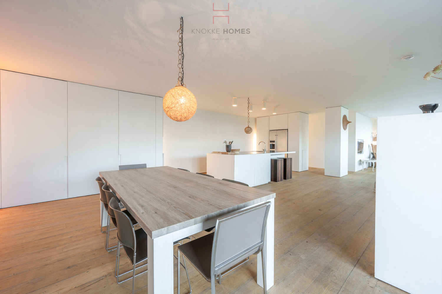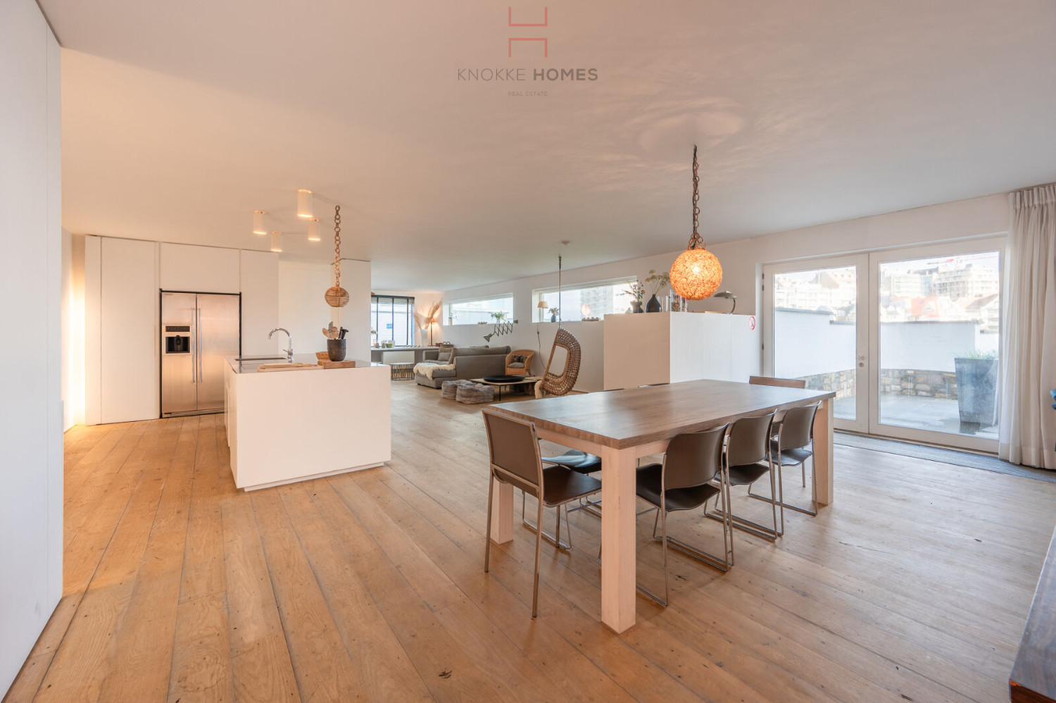 Superbe situation pour cet appartement atypique à deux pas de la plage à Duinbergen. L'appartement en style loft profite de 160 m2 habitable avec un très grand séjour avec coin TV, coin lecture, salle à manger et cuisine ouverte entièrement équipée, un hall de nuit nous amenant aux 3 grandes chambres à coucher avec salle de bain et salle douche. Enormément de placards de rangement sur mesures, débarras pour machine à laver, cave privative au rez-de-chaussée, local à vélo et possibilité d'acquisition d'un garage dans la résidence. Opportunité unique pour ce sublime appartement de vacances. Infos et visites via le 050 760 760.
