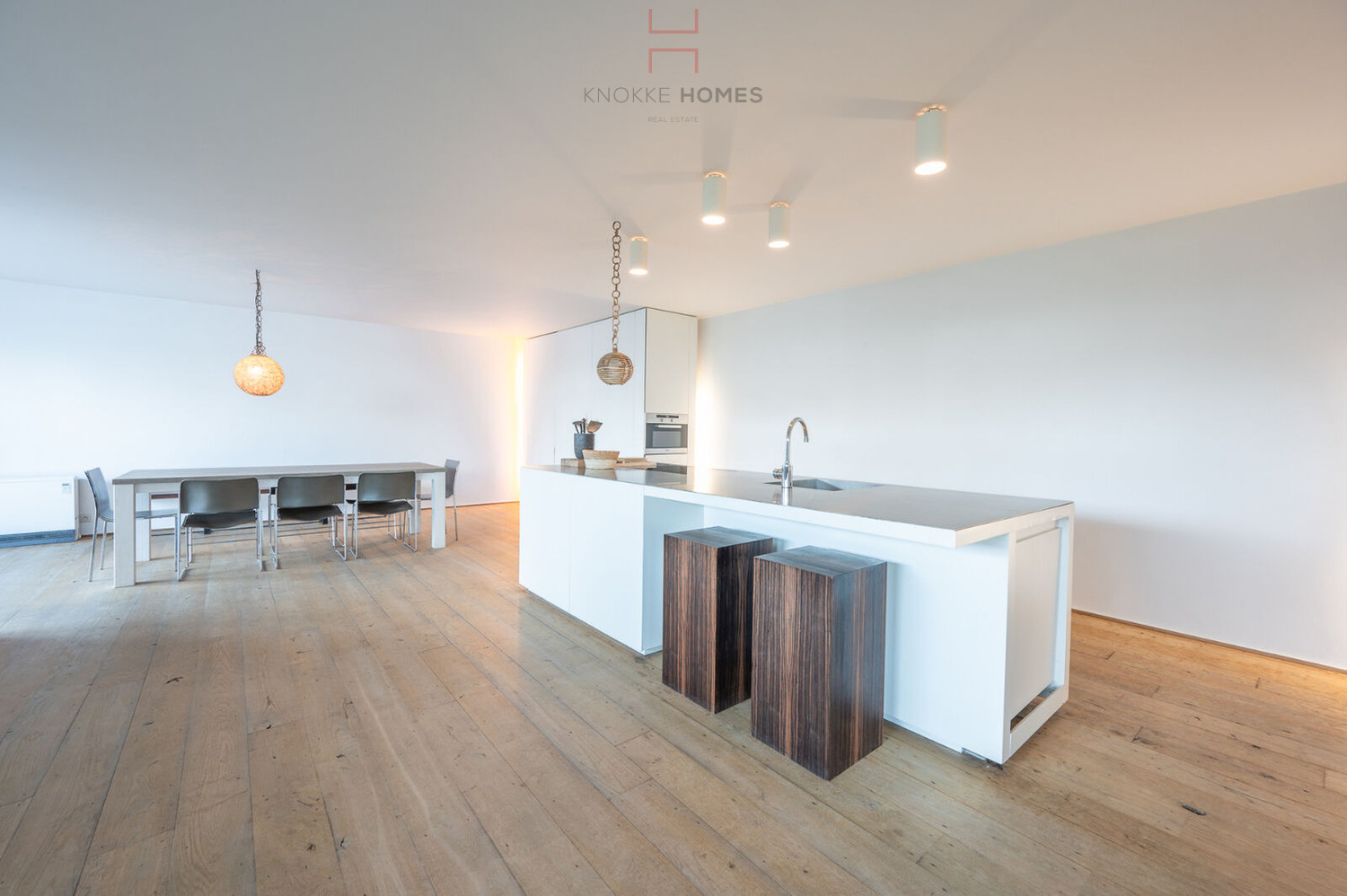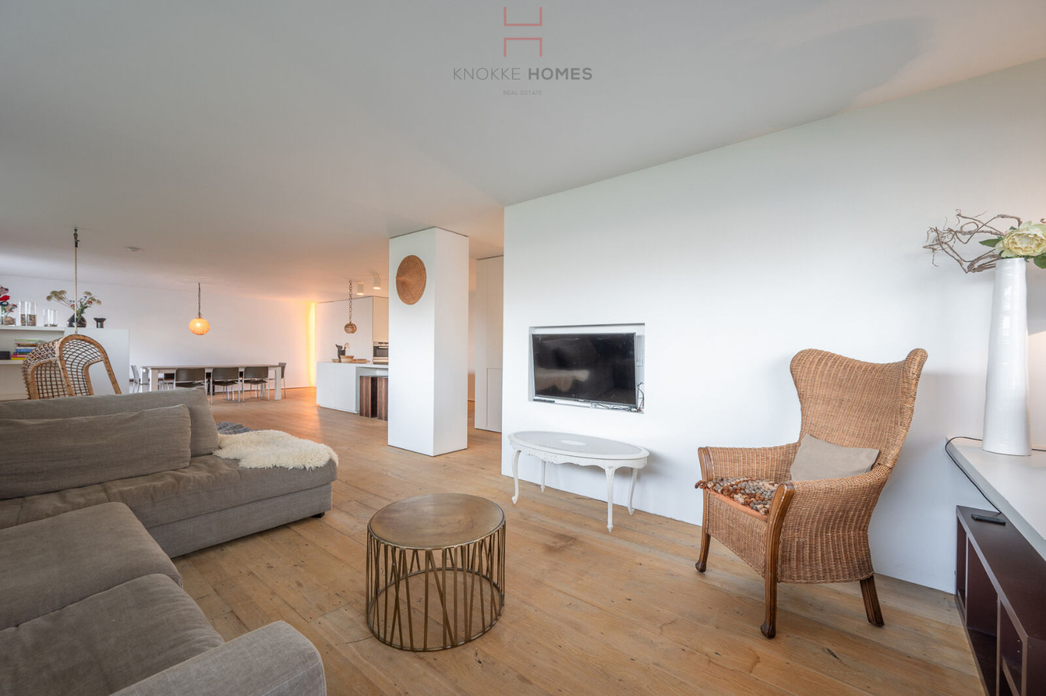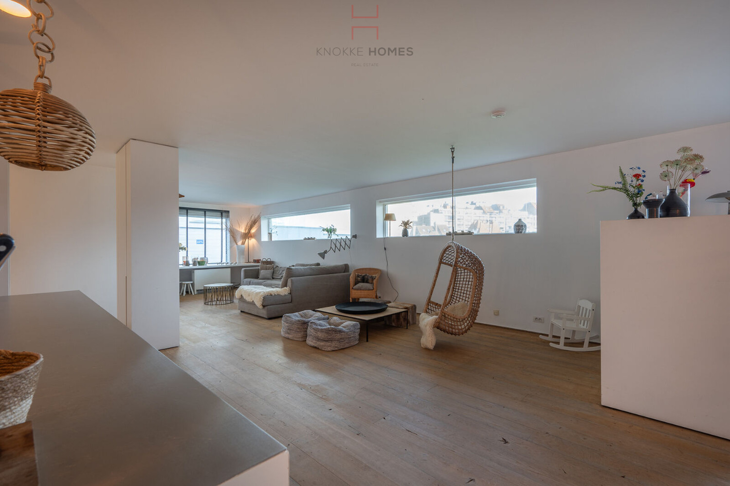 Superbe situation pour cet appartement atypique à deux pas de la plage à Duinbergen. L'appartement en style loft profite de 160 m2 habitable avec un très grand séjour avec coin TV, coin lecture, salle à manger et cuisine ouverte entièrement équipée, un hall de nuit nous amenant aux 3 grandes chambres à coucher avec salle de bain et salle douche. Enormément de placards de rangement sur mesures, débarras pour machine à laver, cave privative au rez-de-chaussée, local à vélo et possibilité d'acquisition d'un garage dans la résidence. Opportunité unique pour ce sublime appartement de vacances. Infos et visites via le 050 760 760.