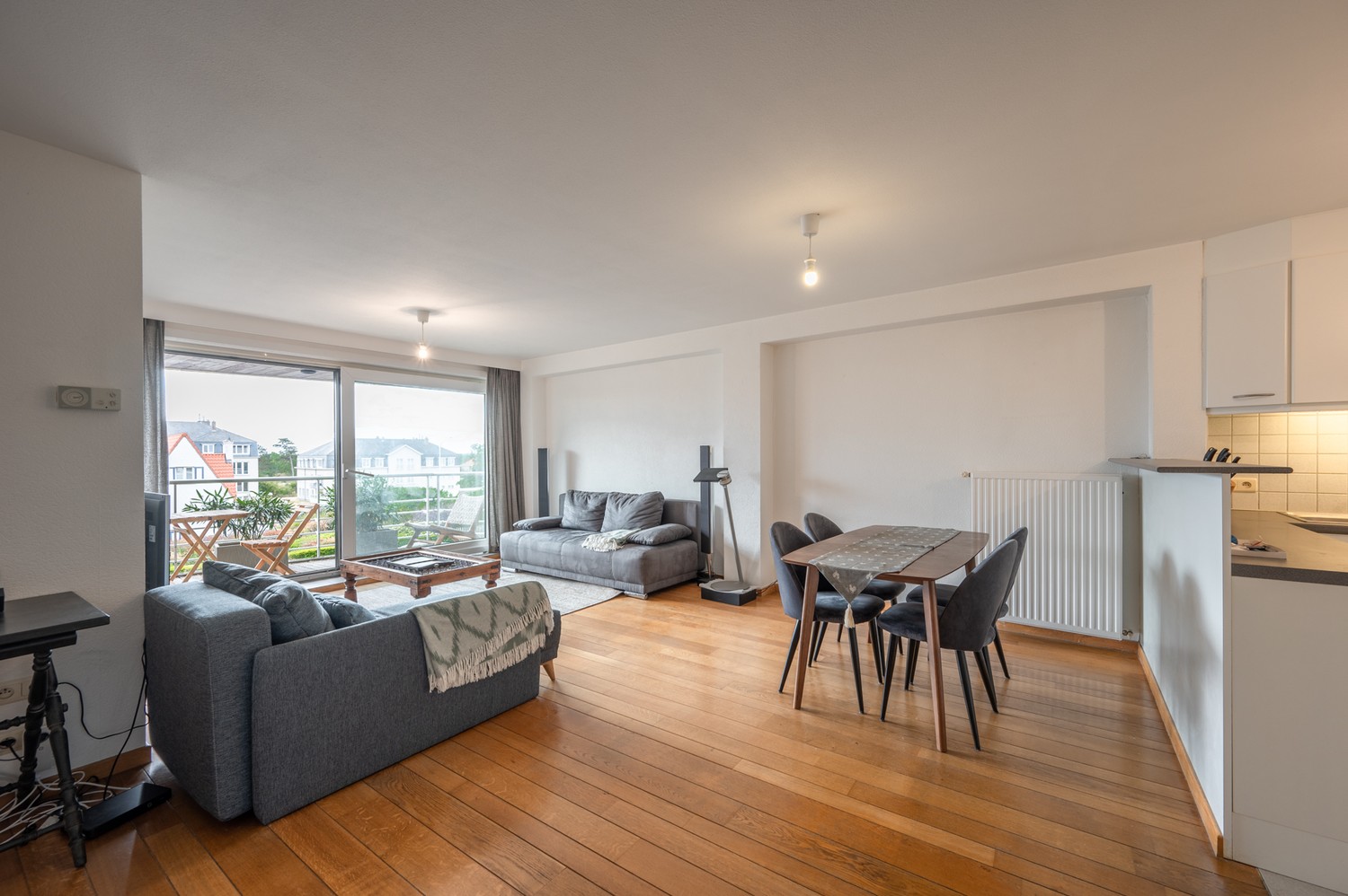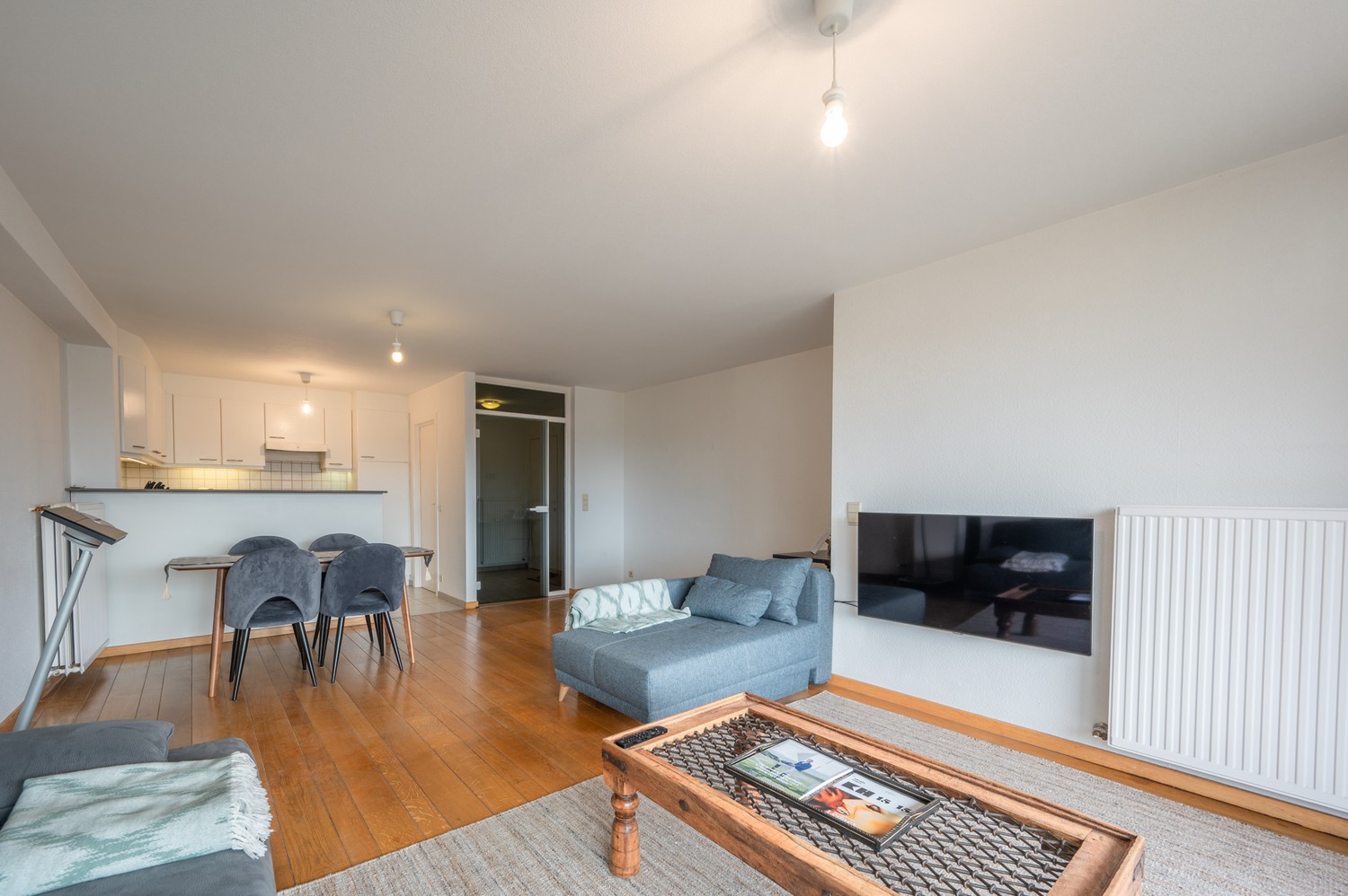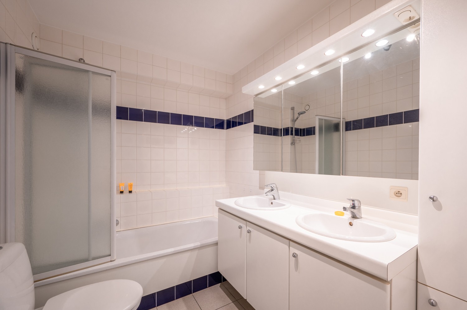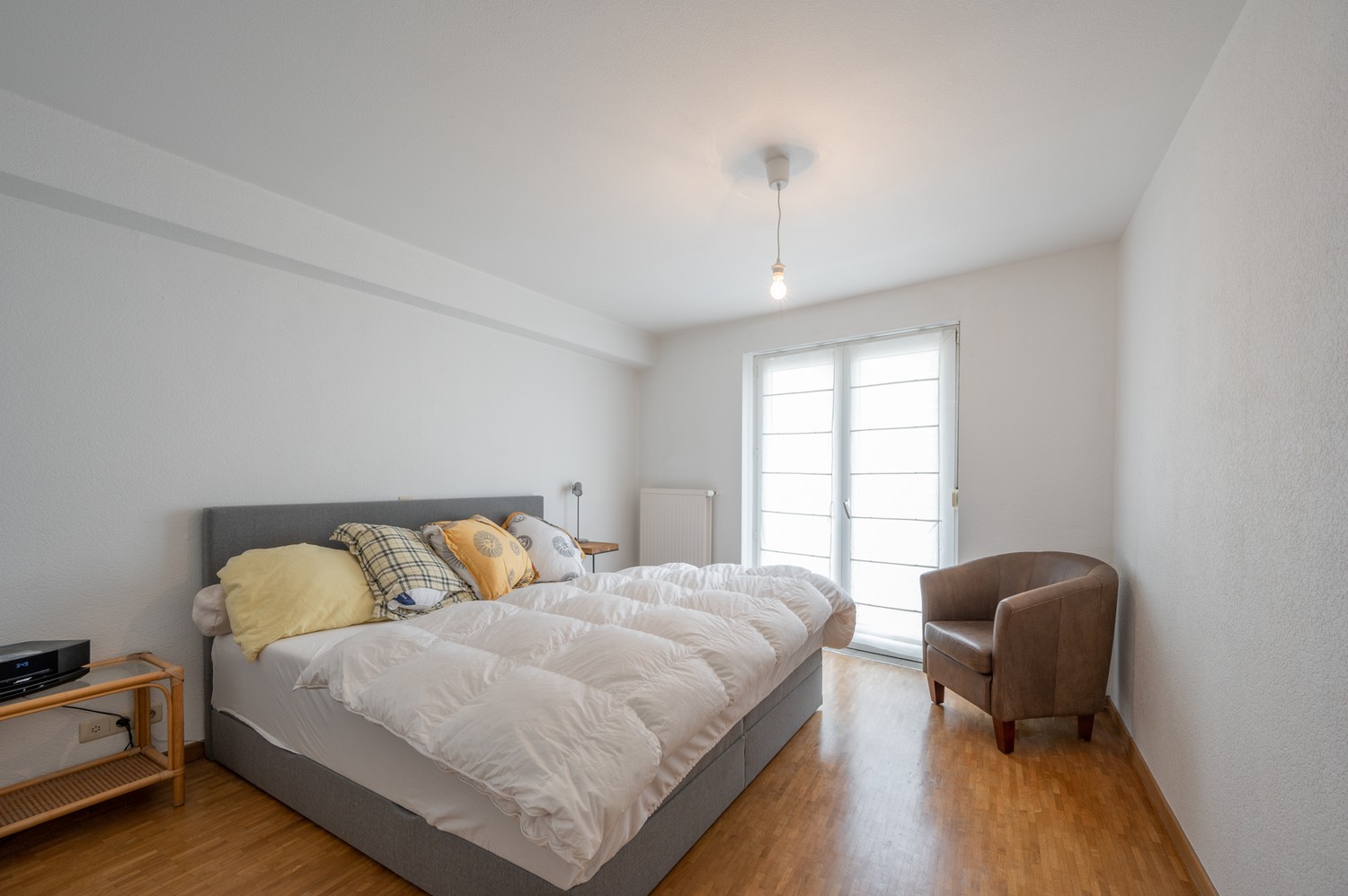 Composition : hall d'entrée avec vestiaire et toilettes séparées avec lavabo. Salon et salle à manger spacieux avec accès à la terrasse orientée au sud avec une vue agréable sur la verdure. Cuisine ouverte et équipée. Volets. En outre, un débarras pratique et spacieux avec chauffage central et un raccordement pour machine à laver et sèche-linge. Salle de nuit. Grande chambre pour double lit avec beaucoup d'espace de rangement. Petite terrasse arrière. Salle de bain avec baignoire avec écran de douche, 2ème toilette et double lavabo. Loué en vertu du droit commun. Technique : compteurs individuels pour l'eau, le gaz et l'électricité. Chauffage central individuel au gaz naturel. Radiateurs. Emplacement de vélos au sous-sol accesible. Co-propriété : Résidence privée - 9 unités d'habitation - création co-propriété anno 2022 - résidence permanente dans le bâtiment.