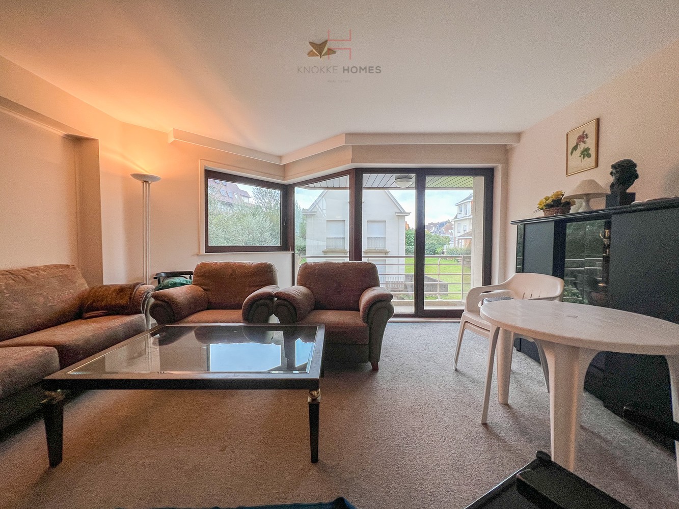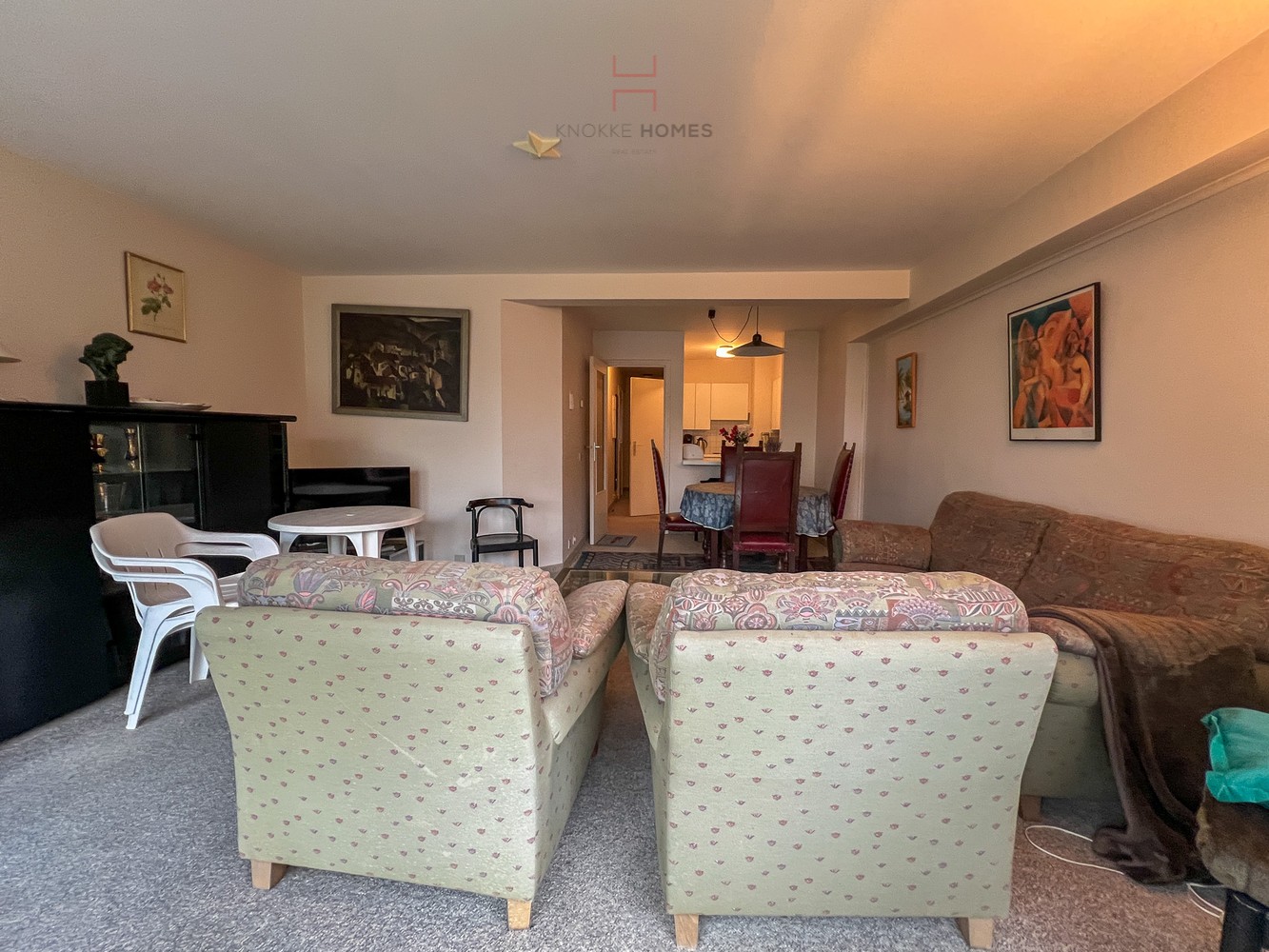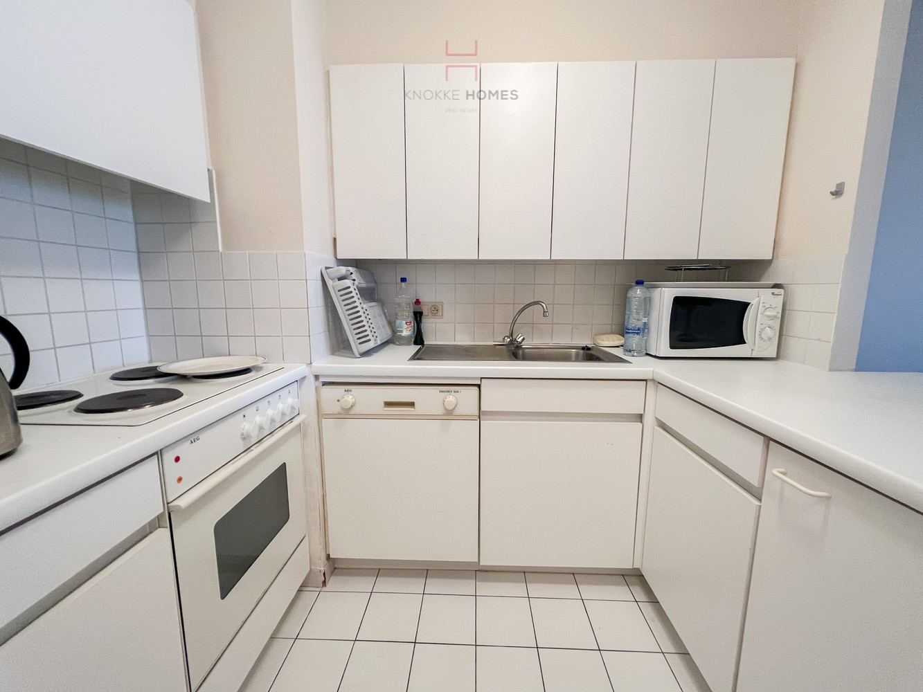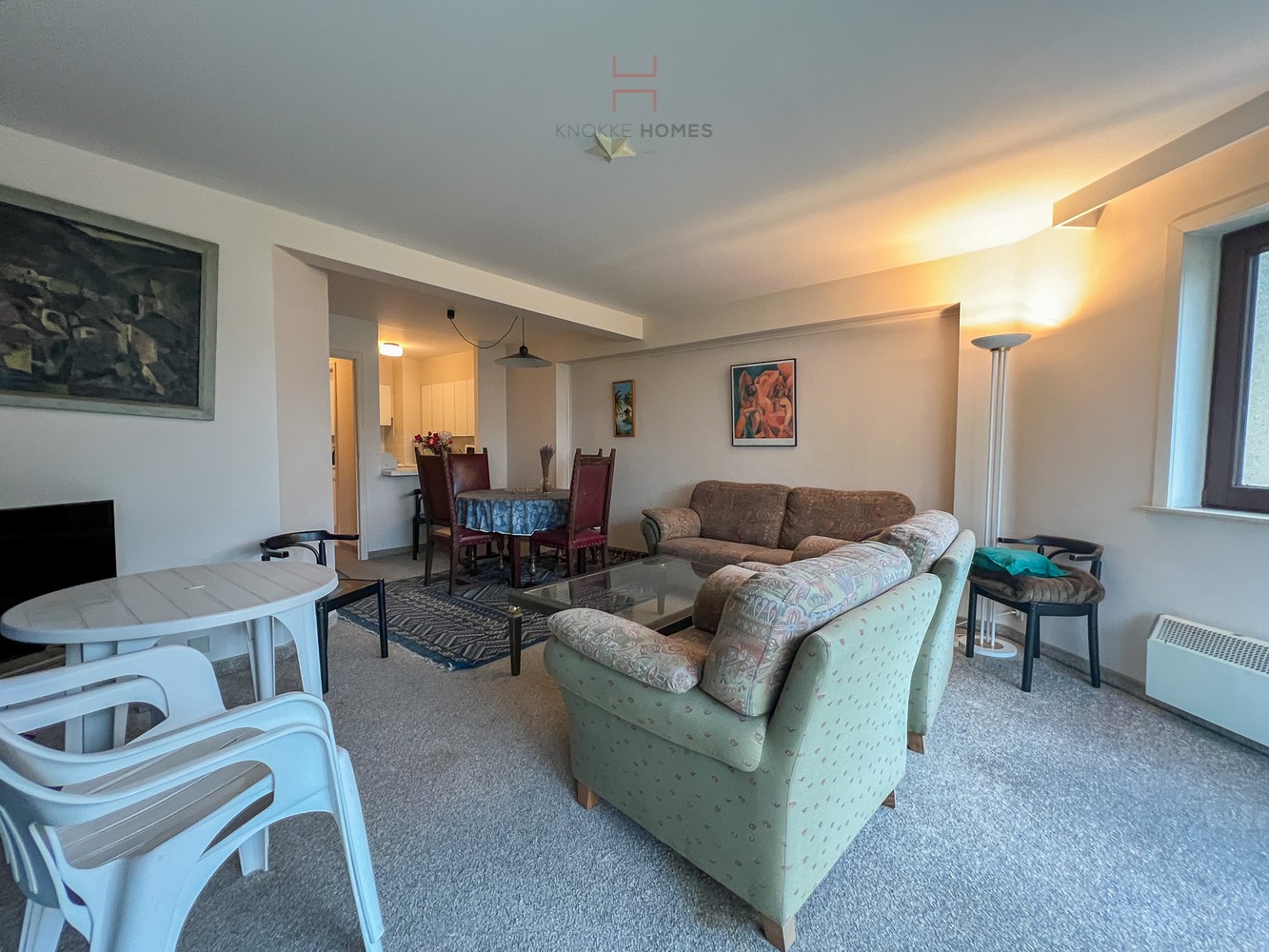 Appartement meublé orienté sud avec terrasse ensoleillée à Duinbergen. L'appartement dispose d'une terrasse avec vue sur les villas, d'un salon spacieux avec coin repas, d'une cuisine entièrement équipée, de 2 chambres avec lit double, d'une salle de bains avec baignoire et double lavabo et de toilettes séparées. Frais de syndic inclus.