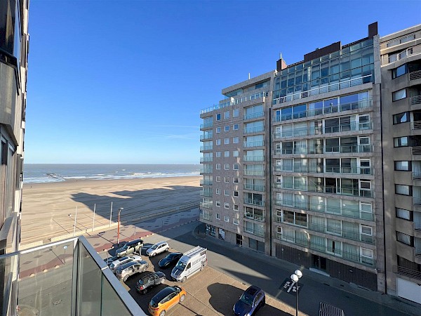 Aangenaam appartement met twee slaapkamers en zijdelings zeezicht gelegen op het Manitobaplein te Duinbergen.