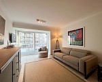 Comfortabel tweeslaapkamer appartement met breed zijdelings zeezicht over het Manitobaplein.