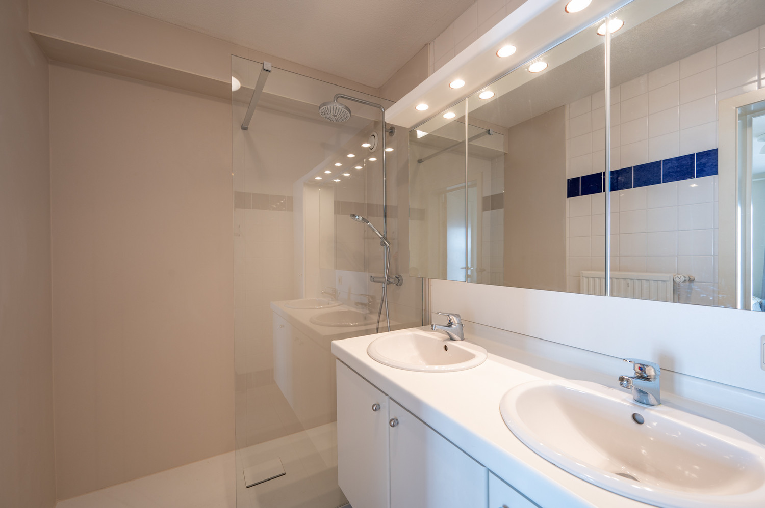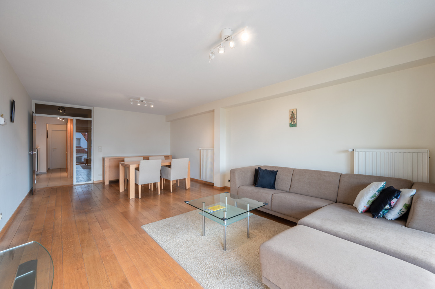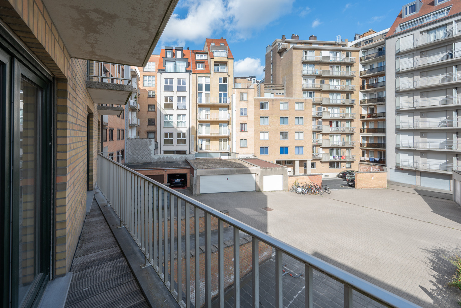 Instapklaar appartement met een brede leefruimte, dmv een groot schuifraam uitgevend op een aangenaam Zuidgericht terras met een open zicht op groen. Verder een aparte, volledig ingerichte keuken met eethoek en aansluitende berging met CV en aansluiting voor WM/DK, een ruime inkom met vestiaire en apart gastentoilet. Achteraan zijn er twee volwaardige slaapkamers, beide uitgevend op een achterterras, waarvan de master bedroom beschikt over een eigen gerenoveerde douchekamer met inloopdouche en de gastenkamer met eigen badkamer met ligbad, toilet en dubbele wastafel. Fietsberging in het gebouw. Rolluiken. Technisch: individuele tellers voor water, aardgas en elektriciteit. CV installatie individueel op aardgas. Radiatoren. VME: Voormalige private Residentie - 9 wooneenheden - creatie VME anno 2022 - Permanente bewoning in het gebouw. Verhuurd onder gemeen recht. Vrijblijvende bezoeken mogelijk na afspraak op het nr 050/760760.