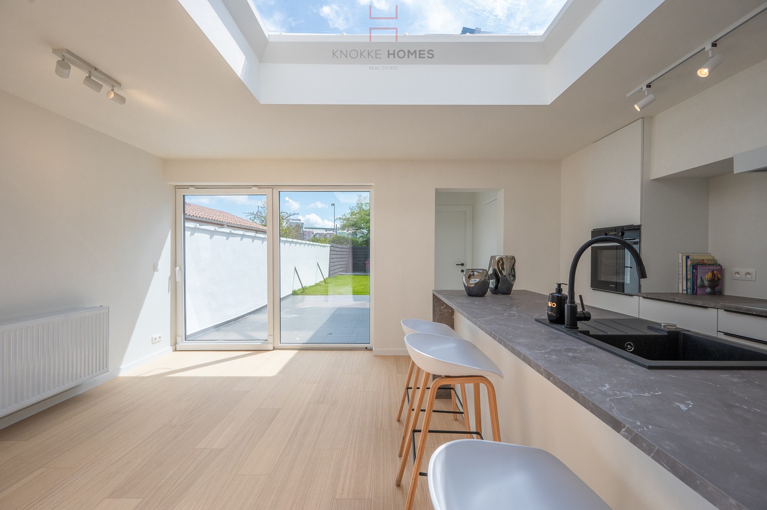 Deze mooi gerenoveerde woning is ideaal gelegen in de Hendrik Consciencestraat in het bruisende Heist aan zee. Dankzij de mooie gevelbreedte geniet u van een ruime en lichte leefruimte die naadloos overgaat in de moderne keuken, mooi ingericht met toestellen van Miele (grote koelkast met diepvries, dampkap, kookplaat, oven & vaatwas) en voldoende werkblad en kastruimte. Verder een gastentoilet en de praktische hobby- of bureauruimte op het gelijkvloers. Daarnaast is er een brede inkomhal met een kleine berging. Op de eerste verdieping vindt u twee ruime slaapkamers voor dubbel bed en een moderne douchekamer met inloopdouche en toilet. Ook een handige bergruimte met aansluiting voor WM en DK is voorzien. De bovenste verdieping herbergt de derde royale slaapkamer met een en-suite badkamer, uitgerust met een ligbad, douche en toilet. Buiten kunt u genieten van een mooi terras en een zonnige, aangename tuin. De woning werd technisch grondig gerenoveerd met oog voor detail (dakisolatie, ramen, condens CV op aardgas,...) en werd voorzien van zonnepanelen. Mis deze kans niet om eigenaar te worden van deze schitterende woning op wandelafstand van de zeedijk en het strand in Heist! Bezoek en extra informatie via 050/760760